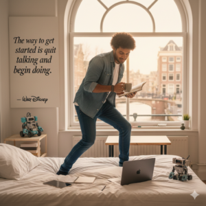 Het is een bekend fenomeen onder ambitieuze jongeren: de zolderkamer ligt vol met briljante plannen, maar de stap naar de Kamer van Koophandel voelt als